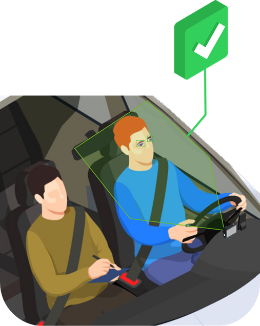 Система анализирует состояние глаз водителя. Алгоритмы AI выявляют признаки усталости (частое моргание), микросон и отвлечение от дороги. Это помогает предотвратить опасные ситуации. Система идентифицирует водителя по биометрии